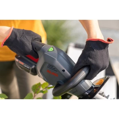 Die sehr leichte und netzunabhĂ€ngige Akku-Heckenschere ermöglicht Ihnen einen bequemen Aktionsradius ohne Kabelwirrwarr und schlieĂt die Gefahr aus, ein Elektrokabel unabsichtlich zu durchtrennen. FĂŒr eine leichte Handhabung zum sicheren, bequemen Arbeiten in jeder Position sorgt der ergonomisch geformte Handgriff.