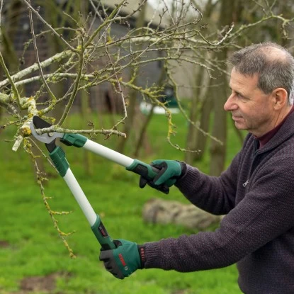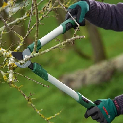 Die Bosch Bypass-Astschere ist eine handbetriebene Gartenschere zum Schneiden von BĂ€umen, StrĂ€uchern oder Hecken. Dank des Bypass-Schneidsystems ist die Astschere insbesondere fĂŒr dĂŒnnere Ăste oder jungen GrĂŒnschnitt geeignet.