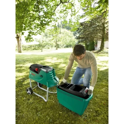 Der Bosch Elektro-Leisehäcksler AXT 25 TC dient zum Zerkleinern von Ästen, Zweigen und Laubabfällen jeglicher Art. Dabei arbeitet der Elektrohäcksler mit besonders geringen Geräuschemissionen, sodass sich Ihre Nachbarn nicht gestört fühlen. Auf diese Art und Weise entsorgen Sie Ihre Gartenabfälle wie Heckenschnitt, Laubreste, Äste oder Zweige bequem und mühelos im eigenen Garten. Das Häckselgut eignet sich anschließend ideal als Kompost.