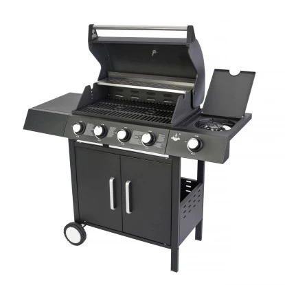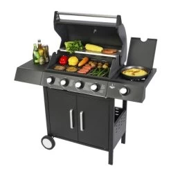 Dieser Gasgrill wird nach hohen Qualitätsstandards gefertigt und entspricht sämtlichen geltenden Normen, um höchstmögliche Sicherheit beim Grillen zu bieten. Das schlichte, hochwertige Design in Kombination mit der hohen Funktionalität des Gerätes, lässt keinerlei Wünsche offen und wird sowohl Besitzer als auch Gäste beeindrucken und die vielfältigen Einstellungsmöglichkeiten dieses Grills erlauben es, jede beliebige Speise optimal zu garen – für eine reichhaltige und gesunde Ernährung. Ein Seitenbrenner ermöglicht zudem zusätzliche Flexibilität, z.B. können Sie damit gleichzeitig eine Soße kochen. Mit einem Gasgrill genießen Sie gegenüber Holzkohlegrills entscheidende Vorteile: Komfort und Nutzbarkeit. Zum Beispiel kann das Garen von Speisen innerhalb von Minuten beginnen, Sie müssen sich keine Sorgen um Holzkohlenrauch machen, der Garvorgang kann präzise gesteuert werden, etc. Das Gerät bietet großzügige Ablagen, sodass Sie alle benötigten Utensilien stets griffbereit haben. Dank großer Kunststoffräder kann der Grill bequem und ohne den Boden zu beschädigen transportiert werden.
