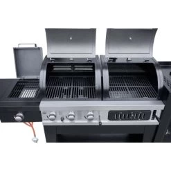 – Zwei getrennte Garkammern für Holzkohlegrillen und Gasgrillen