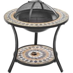Die exklusive Gartenfreude Feuerstelle Mosaik mit einem pulverbeschichtetem Stahl Gestell und Ă 58 cm, ist ein Blickfang in jedem Garten. Echte Mosaiksteine schmĂŒcken die Feuerschale und sorgen so fĂŒr ein extravagantes Ambiente in Ihrem Garten oder auf Ihrer Terrasse. Dank der praktischen Abdeckung kann die Feuerschale auch als Beistelltisch verwendet werden.