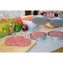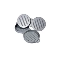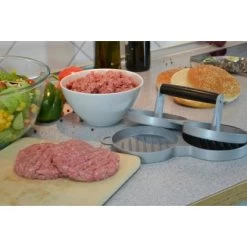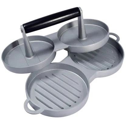 Ein Grillfest mit leckeren Hamburgern? Mit der Hamburgerpresse gelingen dir schnell und einfach perfekt geformte Hamburger oder Frikadellen. Die robuste und formstabile Gussform besteht aus einem Ober- und einem Unterteil. Mit dem breiten Griff des Oberteils lÀsst sich Druck aufbauen, mit dem das Hackfleisch leicht in die entsprechende Form gepresst wird. Danach kann es sofort weiter auf den Grill wandern. Mit der Hamburgerpresse lassen sich zwei Pattys gleichzeitig formen.