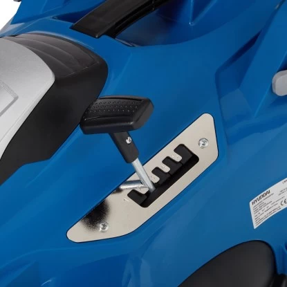Des Weiteren ist der ergonomische Führungsholm mit Schnellspannern, einem 2-Punkt Sicherheitsschalter sowie einem Kabelzugentlastung ausgestattet, um Ihnen maximalen Komfort und Sicherheit zu gewährleisten. Mit den robusten, rasenschonenden Rädern ist das Manövrieren, auch in einem unebenen Gelände, keine Herausforderung mehr. Dabei misst der Raddurchmesser vorne 140 mm, bei einem hinteren Raddurchmesser von 200 mm.