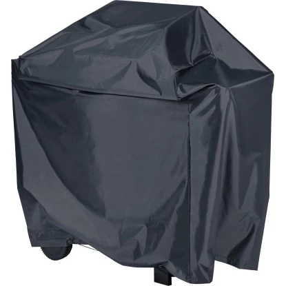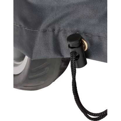 Hergestellt ist der Überzug aus qualitätsvollem Polyester. Das Material schützt vor Regen, Wind, Frost und Sonneneinstrahlung. Zudem punktet es mit wasserabweisenden Eigenschaften und UV-Beständigkeit. Integriert ist eine Zugkordel im unteren Saum zur Fixierung. So bleibt die Grillabdeckung auch bei aufkommendem Wind in Position. Ist der Grill gerade im Einsatz, kannst du die Hülle platzsparend falten. Dank der Jamestown Grill-Schutzhülle erweiterst du die Nutzungsdauer deines Grills und erhältst das Erscheinungsbild.