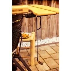 Im Zubehör zusÀtzlich enthalten sind ein Distanzhalter zur Grillrosterhöhung, sowie zwei halbmondförmige Platten, diese dienen als Pizzastein oder als ein Reflektor-Stein zum indirekten Grillen.