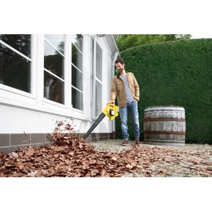 Der Kärcher Akku-Laubbläser LBL 4 Battery ist ein leistungsstarker Laubbläser für die kraftvolle Reinigung des Außenbereichs. Der Laubbläser ermöglicht das problemlose Wegblasen von Laub, Pflanzenresten, Grünschnitt und anderen Gartenabfällen im Garten und rund ums Haus. Aufgrund des handlichen Designs und des Akkubetriebs können Sie sich frei bewegen und sind nicht an eine Stromquelle gebunden. Darüber hinaus ist der Betrieb deutlich emissionsfreundlicher als beispielsweise von benzinbetriebenen Laubbläsern.