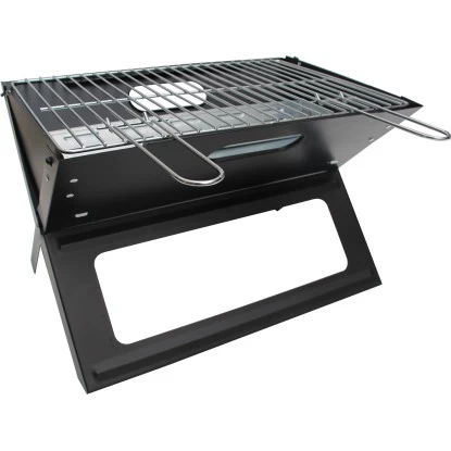 Der kompakte, klappbare Holzkohlegrill ist im zusammengeklappten Zustand schnell und leicht zu transportieren, wodurch er sowohl im Garten als auch fĂŒr Picknick und Camping geeignet ist. Die beiden U-förmigen Griffe stehen etwas ĂŒber den Rand und lassen sich gut greifen. Zusammengeklappt hat der Grill eine MaĂe von 42 cm x 45 cm x 5 cm. Er ist zudem schnell aufgebaut und einsatzbereit. Die GrillflĂ€che ist verchromt und hat ein MaĂ von 44,5 cm x 30 cm.