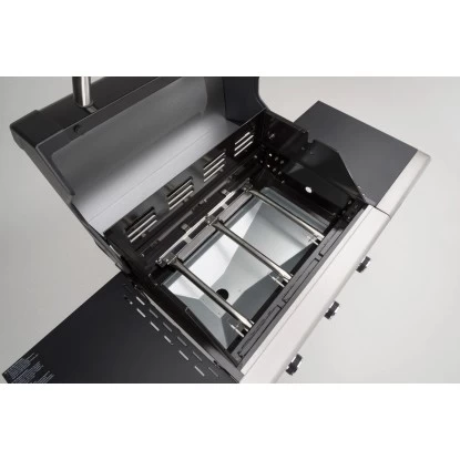 Die beiden SeitenflĂ€chen bieten ausreichend Platz und sind klappbar. Stellen Sie Ihre GewĂŒrze, Zutaten oder Geschirr bequem auf der zusĂ€tzlichen ArbeitsflĂ€che ab. Die drei Edelstahl-Brenner mit einer Leistung von je 3,5 kW sind stufenlos regulierbar. Dank der doppelwandigen Haube gelingt die Hitzeisolierung zuverlĂ€ssig. Die emaillierte Feuerschale ist auĂerdem sehr hitzebestĂ€ndig.
