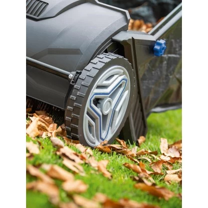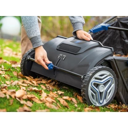 Das LaubgerĂ€t sammelt trockenes oder feuchtes Laub, Rasen sowie Zweige und Dreck auf. Je nach Untergrund und Laubart können Sie die Kehrhöhe stufenlos bis 40 mm einstellen. Dank der groĂen RĂ€der lĂ€sst sich das GerĂ€t einfach schieben und lenken. Ist der Auffangkorb voll, können Sie ihn ĂŒber die EinhĂ€ngestange einfach abnehmen und entleeren. FĂŒr ein ergonomisches Arbeiten lĂ€sst sich der Griff auf Ihre KörpergröĂe einstellen. Sein BĂŒgel ist mit einem angenehmen Soft-Grip-Material ummantelt, das rutschsicher in der Hand liegt. Bei Nichtverwendung bietet Ihnen der Kehrer eine platzsparende Aufbewahrung inklusive praktischer Wandhalterung.