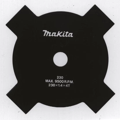 Das 4-schneidige Schlagmesser von Makita mit einem Ă von 230 mm eignet sich ideal zum MĂ€hen von hohem Gras und Wildwuchs.