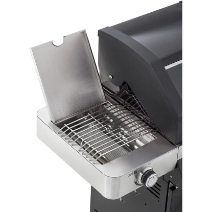 Gasgrill mit 2 Haupt-Brennern (je 3,5 kW), Hochleistungsbrenner aus Edelstahl mit Jet-Flame-Zündsystem, Primezone im Seitentisch (3,5 kW), Haupt-Grillfläche: 47,5 × 45 cm,Warmhalterost: 47,5 × 16 cm, Inkl. VARIO+ Grillrostsystem mit Halter, Massive Grillroste aus emailliertem Gusseisen sorgen für ein gutes Branding, Grillroste beidseitig einsetzbar, Mit Seitenbrenner (3,0 kW), Beidseitig klappbare Seitentische, Wärmeverteiler und Fettauffangwanne aus Edelstahl, Beleuchtete Drehknöpfe (zweifarbig), Deckel mit Glaseinsatz sorgt für praktischen Einblick in den Garraum, Großes Deckelthermometer (Anzeige in °C und °F), Inkl. Besteckhalter, Gehäuse aus pulverbeschichtetem Stahl, Gasdruckregler mit integrierter Schlauchbruchsicherung, Stauraum für Gasflaschen bis 5 kg