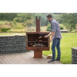 Der rostfarbene Westmann Grill und Kaminofen garantiert gemĂŒtliche Abende in Ihrem Garten. Der Ofen aus pulverbeschichtetem Stahl aus wetterfestem Cortenstahl ist dank seiner leicht gerosteten OberflĂ€che nicht nur bestens vor WitterungseinflĂŒssen und Korrosion geschĂŒtzt, sondern auch gleichzeitig ein wahrer Hingucker. Der breite FuĂ sorgt zudem fĂŒr einen sicheren Stand.