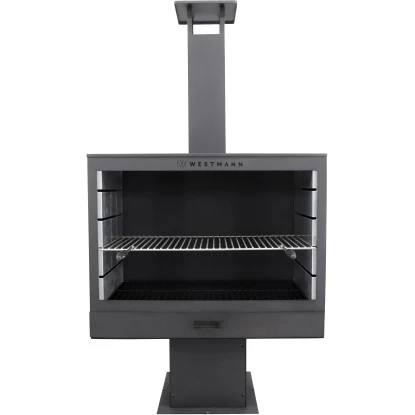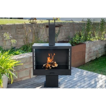 Der schwarze Westmann Grill und Kaminofen garantiert gemĂŒtliche Abende in Ihrem Garten. Der Ofen aus pulverbeschichtetem Stahl ĂŒberzeugt vor allem durch seine StabilitĂ€t und WitterungsbestĂ€ndigkeit. Der breite FuĂ sorgt zudem fĂŒr einen sicheren Stand.